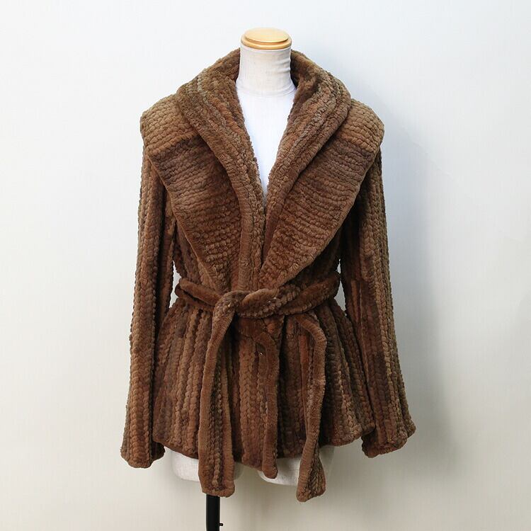 ビーバー 編み込み ファー ジャケット ベルト付 送料無料 レディース ギフト プレゼント