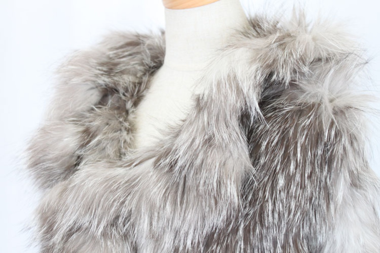 母の日 / ギフト / プレゼント / セール / 敬老の日 / 上質なブルーフロストフォックスを使用した編み込みのファーケープです。ナチュラルカラーならではの自然で上品な色合いはとってもお洒落。ボリューミーなフリルがエレガントで非常に暖かな印象です。