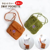 【サイズ(最大部を計測)】縦幅約17cm 横幅約17cm マチ幅約2.5cm 肩ひも持ち上がり約64cm 【重さ】約160g 【内側収納】ファスナー付きポケット×1、カード入れ×1 【外側収納】無し 【留め具】マグネットボタン 【裏地】有り 【素材】表面:ラビット / 内側:合皮、合繊生地 / ベルト:合皮