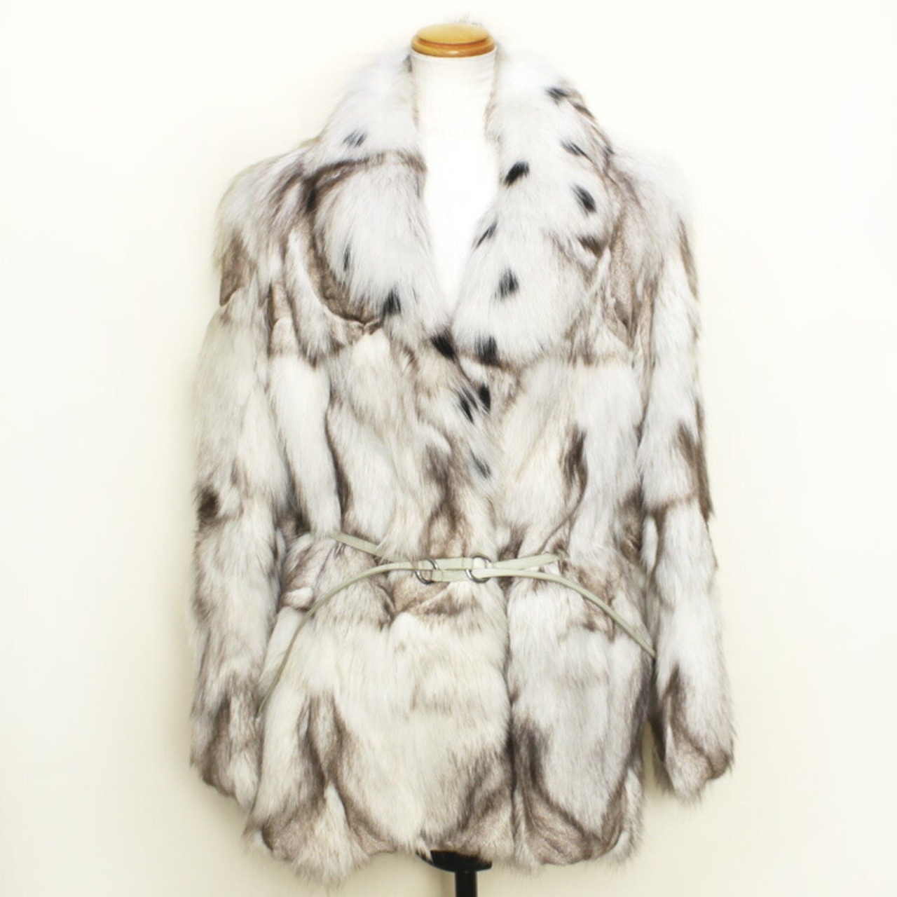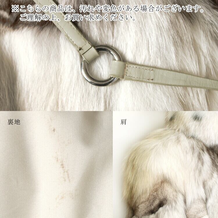 【サイズ(最大部を計測)】Lサイズ相当:着丈約80cm 身幅約92cm 肩幅約44cm 袖丈約68cm 【重さ】約1400g 【留め具】ホック×2 【素材】ブルーフォックス 【内側ポケット】無し 【外側ポケット】2つ 【裏地】無し