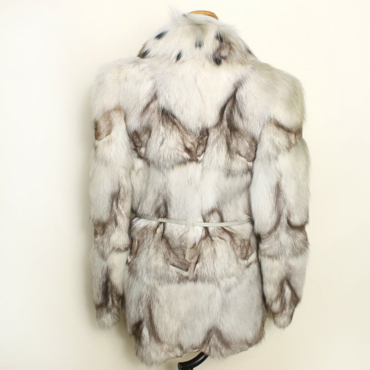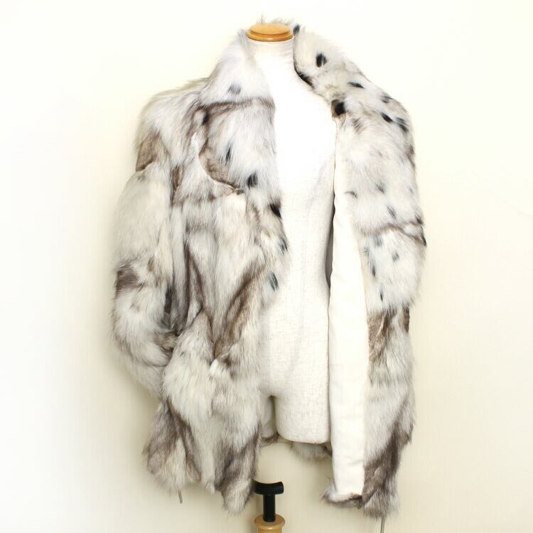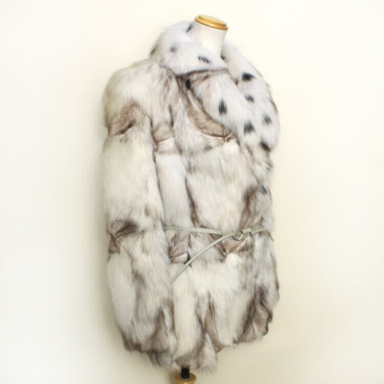 ブチ柄模様のフォックス襟はもちろん、全体のフォックスもボリューミーなファージャケットです。ブルーフォックスは染色がしやすく鮮やかな発色が特徴。定番の人気を誇る品種です。