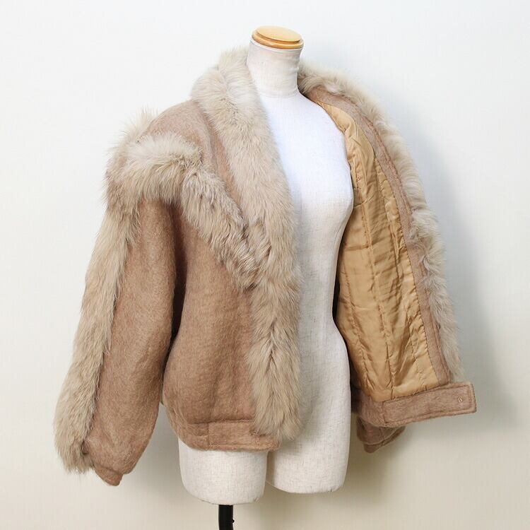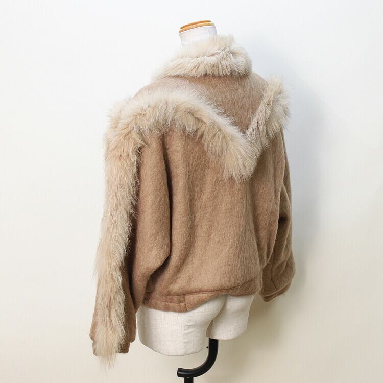 母の日 / 【サイズ】肩幅約66cm 身幅約130cm 着丈約56cm 袖丈約47cm 【重さ】約830g 【素材】ブルーフォックス・シャギーニット 【留め具】ホック×2・ボタン×1 【内側ポケット】無し 【外側ポケット】2か所 【裏地】有り