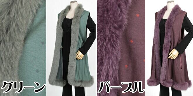 BL6018APU1017【訳あり】 ブルーフォックス ファー トリミング エレガント ニット ジレ ロングベスト 送料無料 レディース ギフト プレゼント