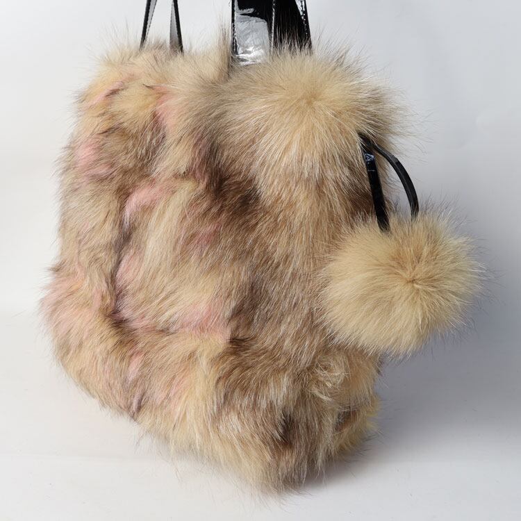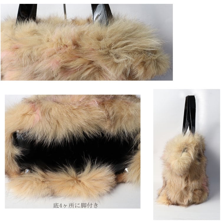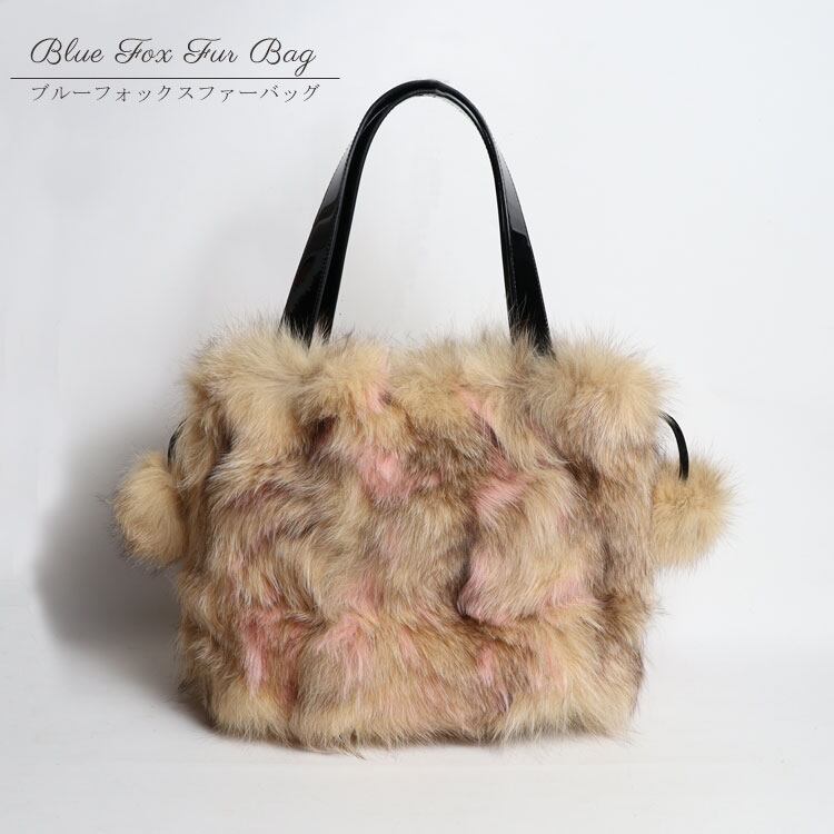 ブルーフォックス ファー ハンドバッグ ベージュ ピンクミックス 送料無料 レディース ギフト プレゼント