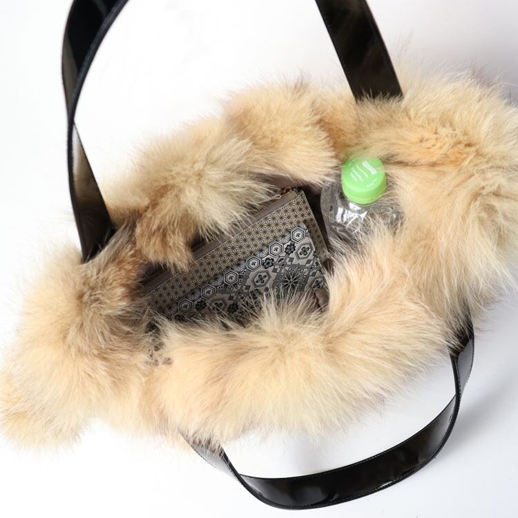 ブルーフォックスのフワフワ感と両サイドのボンボリがとても可愛いバッグです。リアルファーならではのナチュラルな毛並みと、触っているだけで癒される心地良さ。内側にはファスナー付きポケットや大小オープンポケットもあって、小物もバラバラにならず収納出来ます。