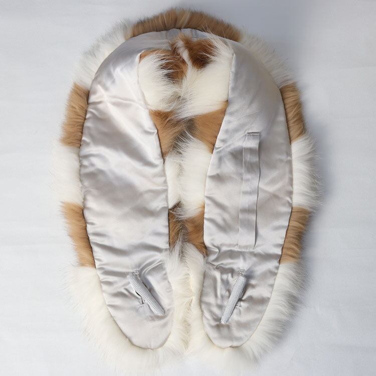 【サイズ(最大部を計測)】毛を含む:全長約118cm 幅約20cm / 裏地のみ:全長約110cm 幅約13.5cm 【重さ】約270g 【留め具】クリップ×2、ベルト×1 【裏地】有り 【素材】ブルーフォックス、シャドーフォックス