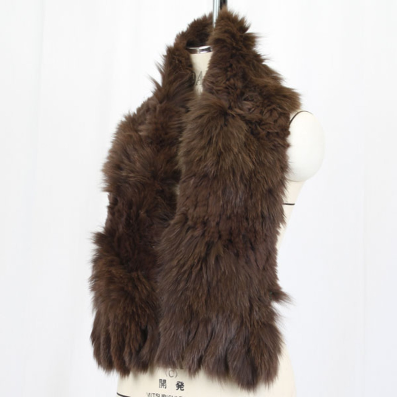 BLMS41ABR1037 ラビット ・ フォックス 編みこみ ファー マフラー ブラウン レディース ギフト プレゼント