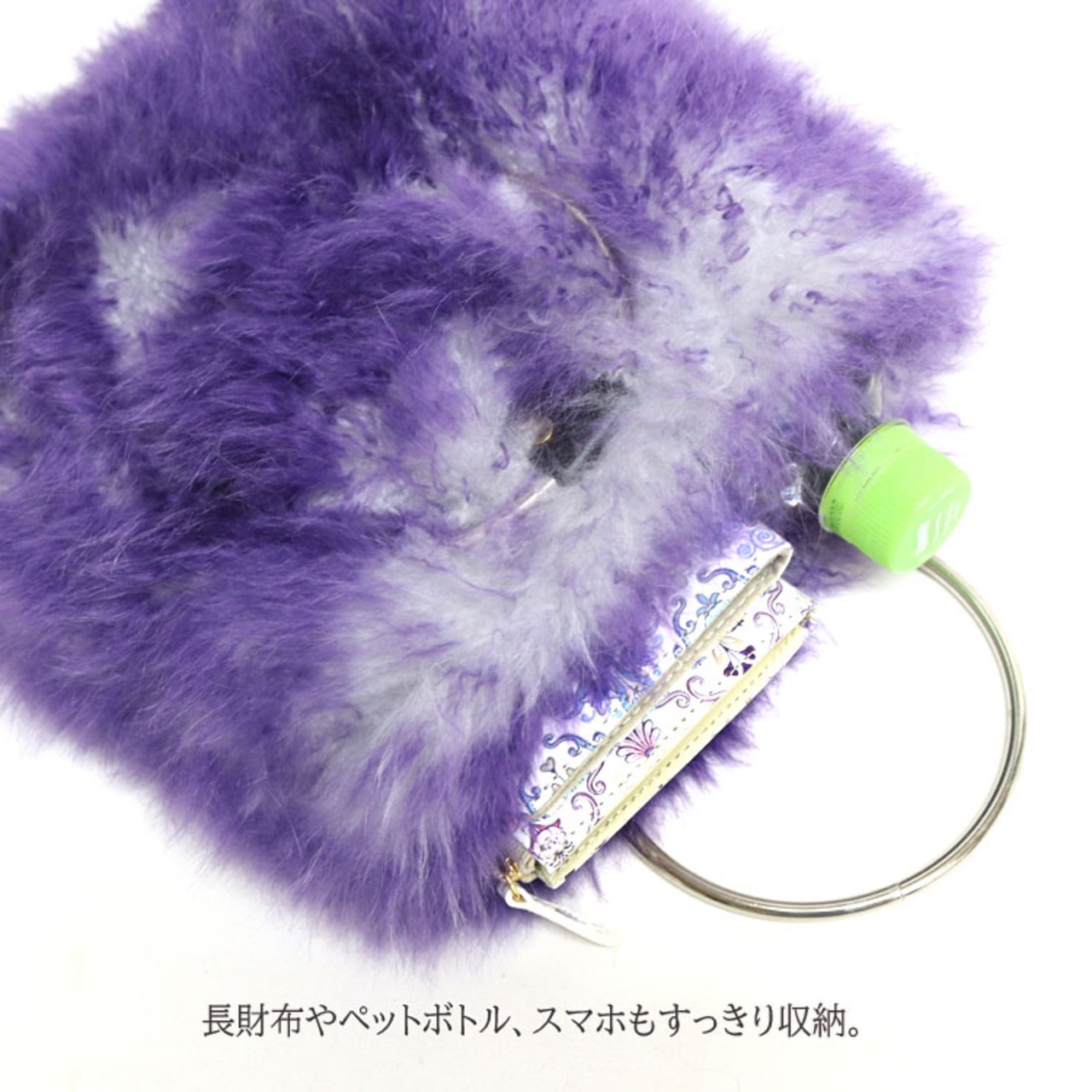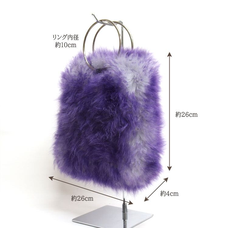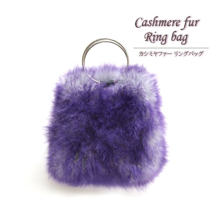 カシミヤ ファー リングハンドル ハンドバッグ パープル レディース ギフト プレゼント 送料無料