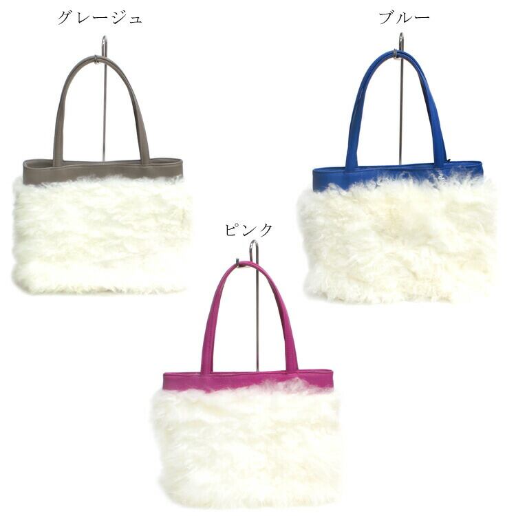 母の日 / ギフト / プレゼント / あのカシミヤをファーで楽しむ。最高の手触りと、くるくるした巻き毛が可愛いトートバッグ。織物のストールなどでポピュラーなカシミヤをファーで使用した贅沢なバッグ。カシミヤの手触りが良いのは皆様ご存知かと思いますが、カシミヤファーはそれを上回る気持ちよさです。毛質もツヤのある巻き毛でとても可愛い。A4サイズのノートやペットボトル、長財布など、欲しいものがすべて入ります。ボタンは開閉しやすいマグネットタイプを採用。小物を仕分けやすく取り出しもしやすいように、内ポケットも2個つけました。