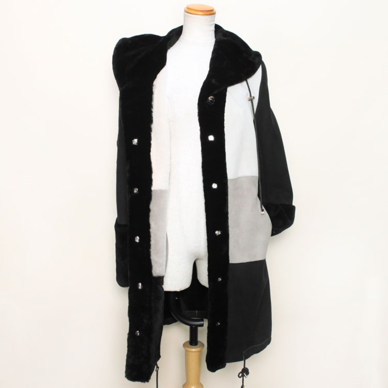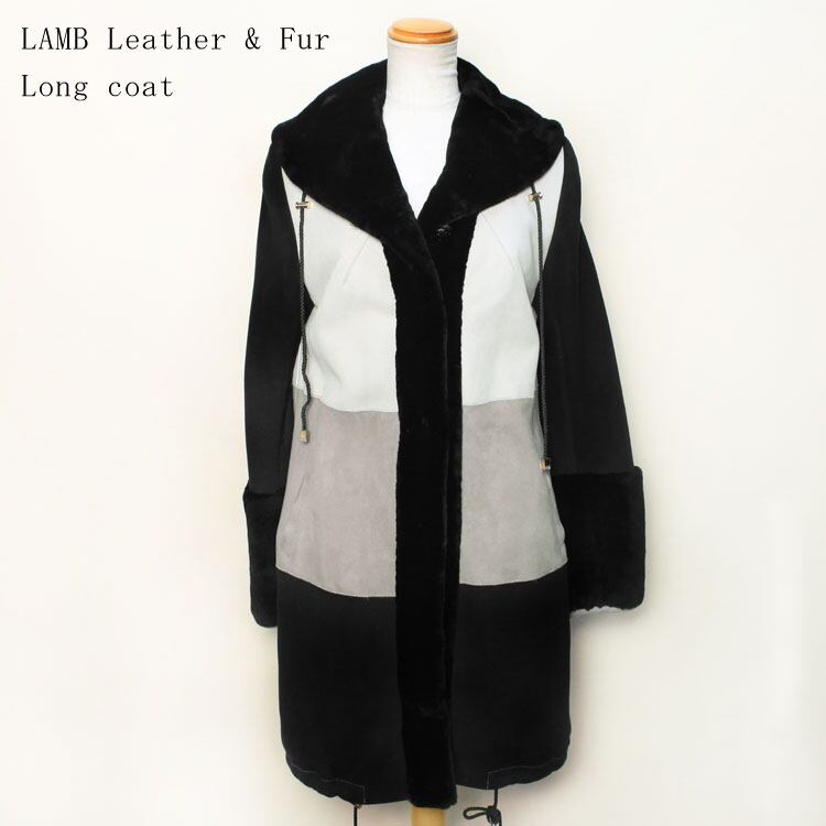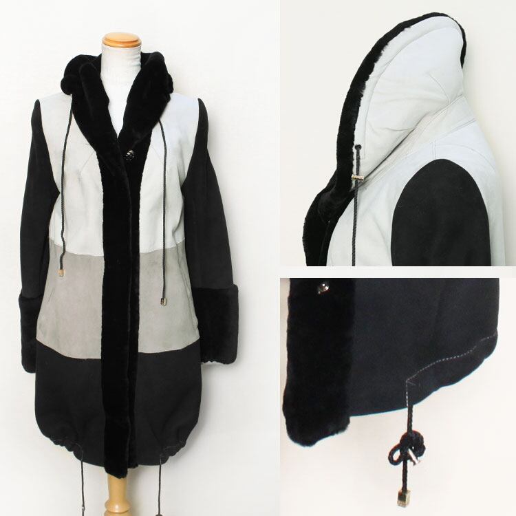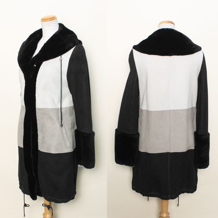 CL8198AMC1063 ラム Wフェイス ファー コート ブラック グレー レディース ギフト プレゼント