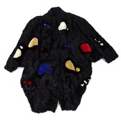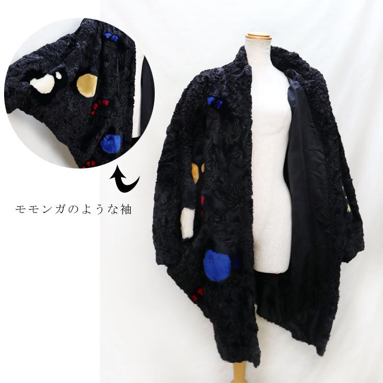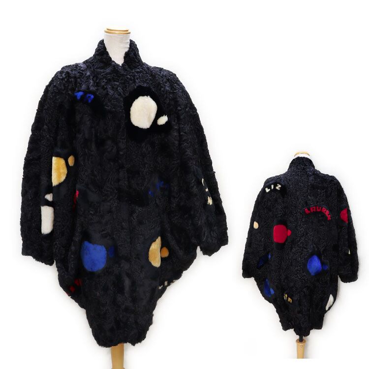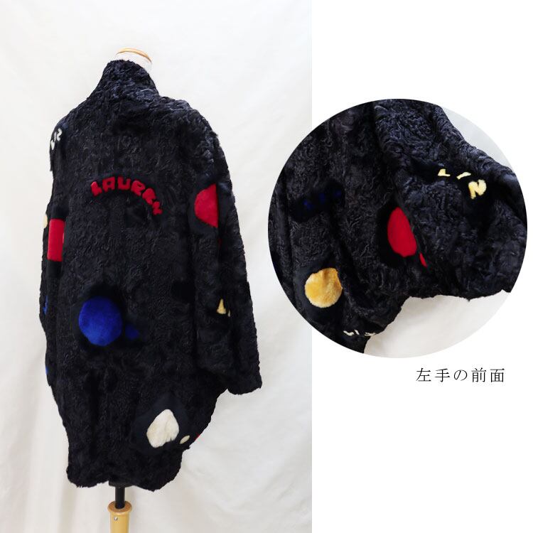 カラクルラム ファー モモンガ ジャケット カラフル ロゴ ブラック フランス製 古着風 送料無料 レディース ギフト プレゼント