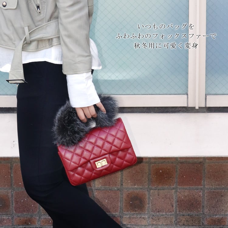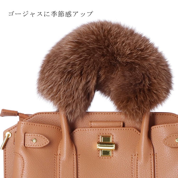 バッグの持ち手に取り付けるだけで、トレンドのファーハンドルに変身できるハンドルパーツです。リアルファーならではの高級感、フォックスの長い毛足とふわふわのインパクト。マジックテープだから着脱も簡単。お手持ちのバッグに取り付けるだけ!持ち手を包むようにとりつけますので、汚れを防ぐハンドルカバーにもなりますね。