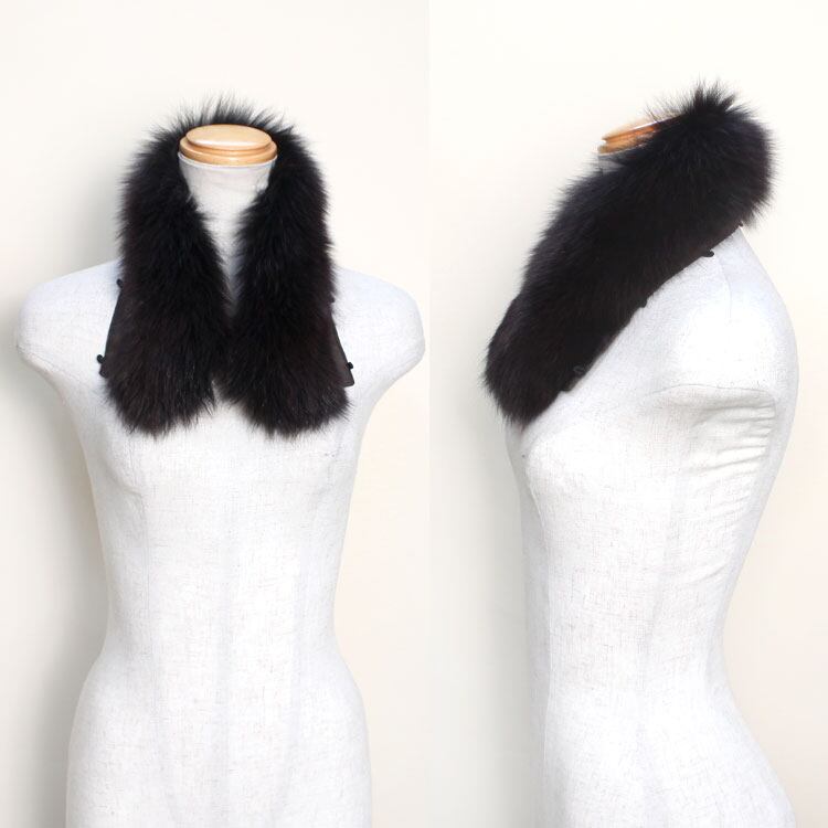 【サイズ(最大部を計測)】長さ約60cm 幅約12cm 【重さ】約55g 【留め具】無し(取り付け用ボタンホール×7) 【素材】ブルーフォックス 【裏地】有り 【生産国】日本