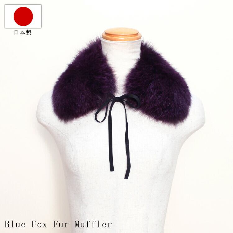 日本製 ブルーフォックス ファー ティペット マフラー パープル レディース ギフト プレゼント