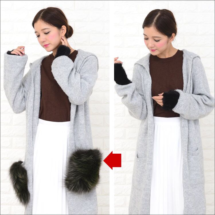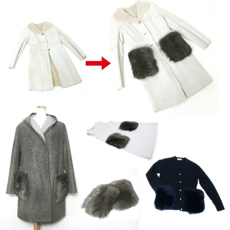 インスタグラマー様愛用 フォックス ファー 手芸 ポケット 飾り パーツ 左右ペア アクセサリー 日本製 レディース ギフト プレゼント ポケット ポケットファー コート アレンジ フェイク フェイクポケット FB5371