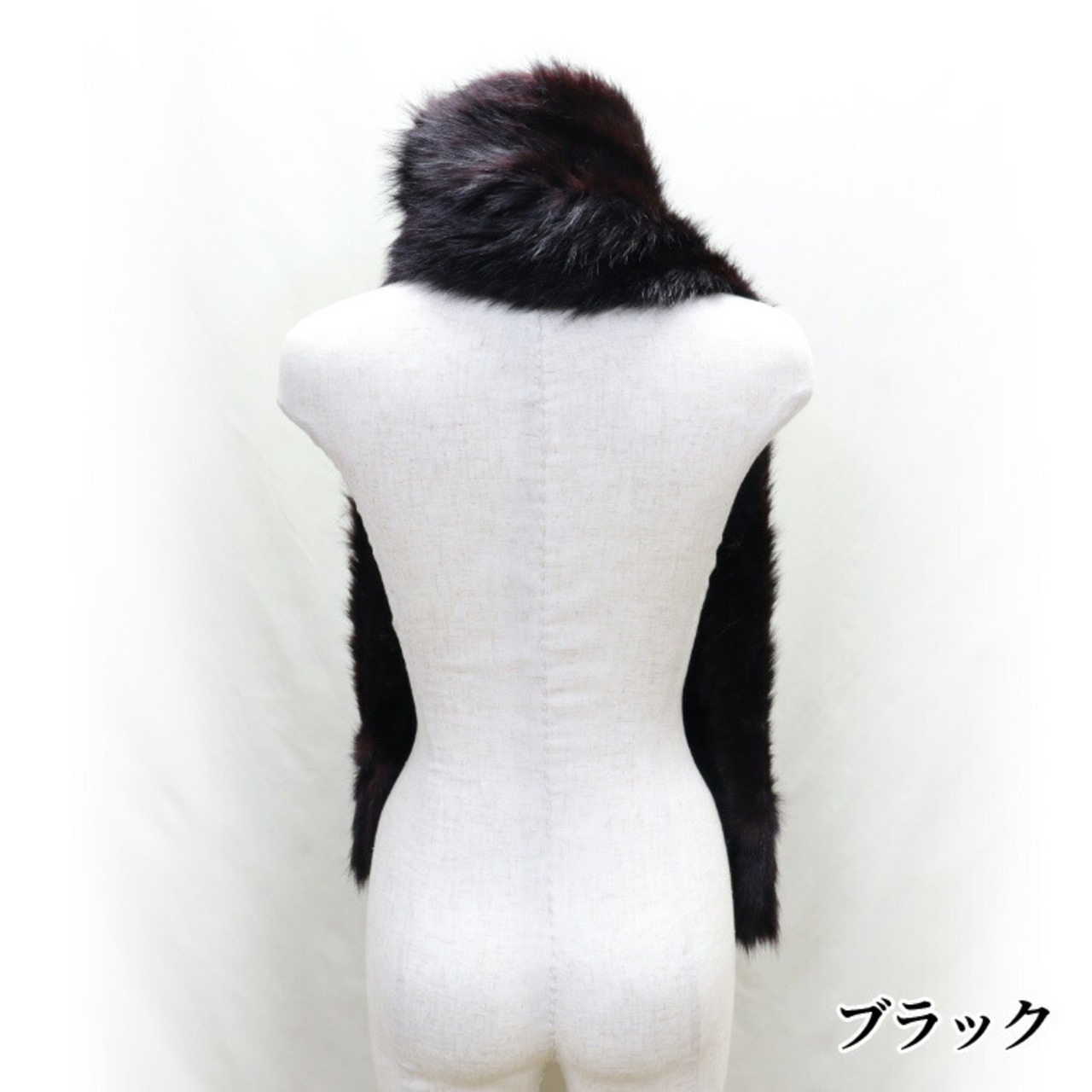 高級素材の一つ、フィッチを使用したファーマフラー。ロングサイズでストールのように羽織ることも出来、便利なポケット付きです。