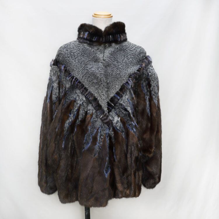FM891DAMC1036 ペルシャラム ・ ミンク ファー ミックス モモンガ ジャケット フリーサイズ 異素材 古着風 送料無料 レディース ギフト プレゼント