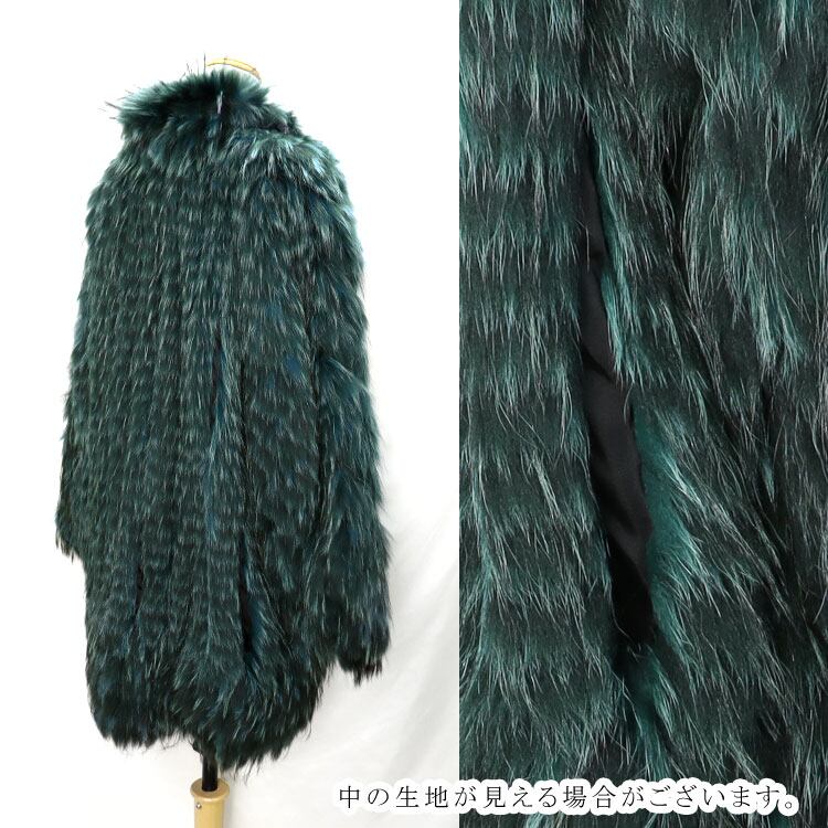 フィンラクーン ファー ジャケット グリーン 送料無料 クジャク ボーダー レディース ギフト プレゼント