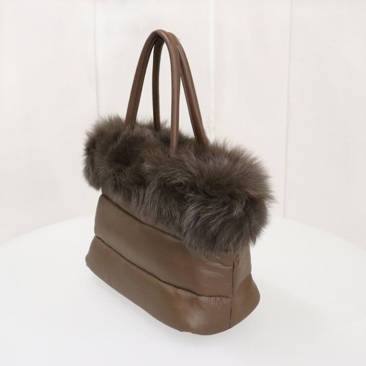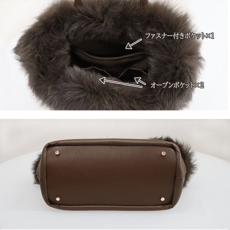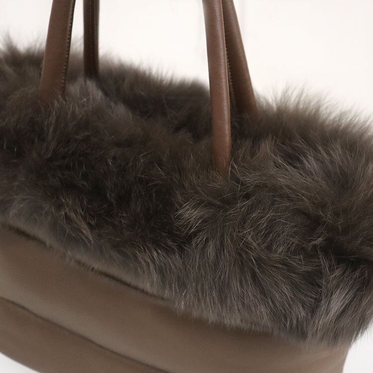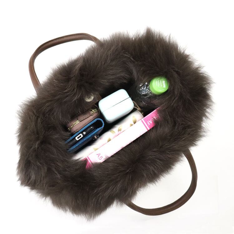 トートバッグ ファーバッグ フォックスファー リアルファー ポリエステル ハンドバッグ ブラウン レディース 送料無料 ギフト プレゼント