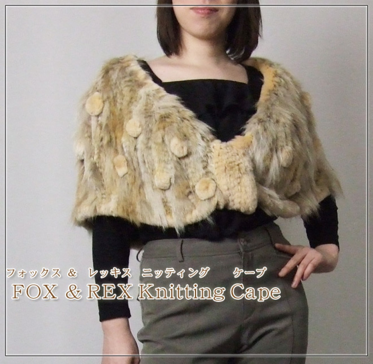 を使ったニッティングのケープです。全体的に、フォックスが使われていますが、特別に首周り、裾、ぼんぼり