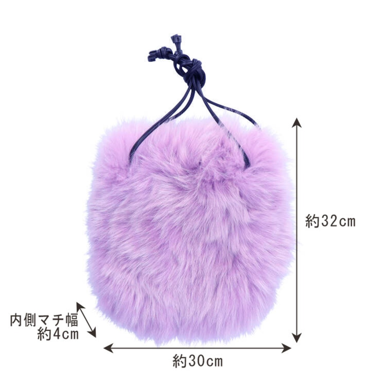 フォックス ファー ショルダーバッグ 巾着 パープル レディース
