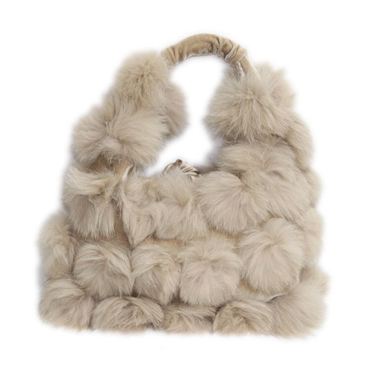 FOG9ANA ブルーフォックス ぼんぼり ファー バッグ ベージュ レディース ギフト プレゼント