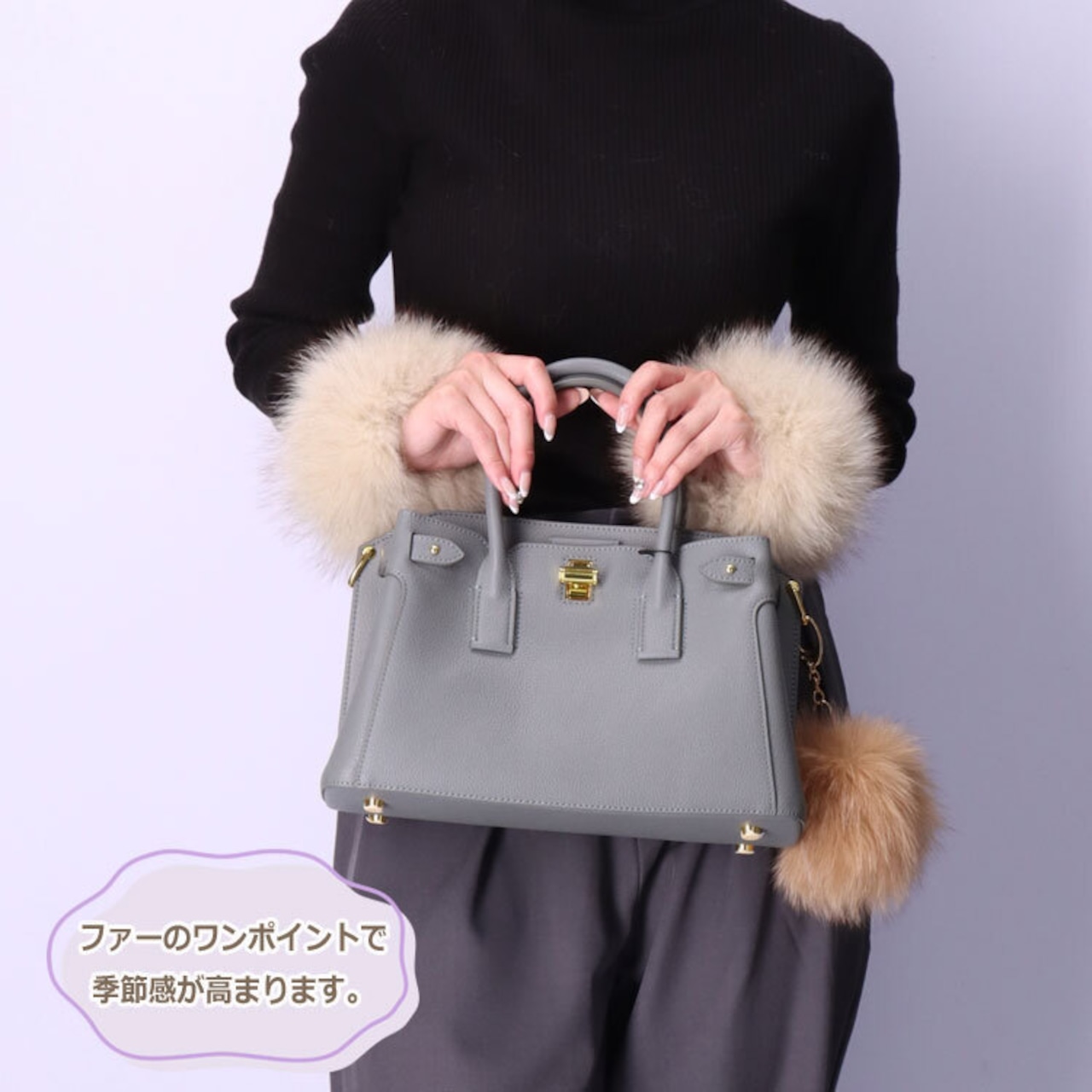 光沢のある長めの毛質、豊かなボリュームが魅力のフォックスのファーをカフスに仕立てました。このカフスは、くるりと自然に巻き付くので、サイズを気にせずニットやアウターの上から手袋の上からと、お好きなコーディネートをお楽しみいただけます。使わないときは、バッグの持ち手につけて、バッグチャームにしても可愛いですよ。冬のパーティシーンで活躍すること間違いなしです。※ベージュ、キャメル、グレー、ナチュラルホワイトはナチュラルの毛色が混ざった色合いになります。※裏地は表の毛皮と同系色になります。