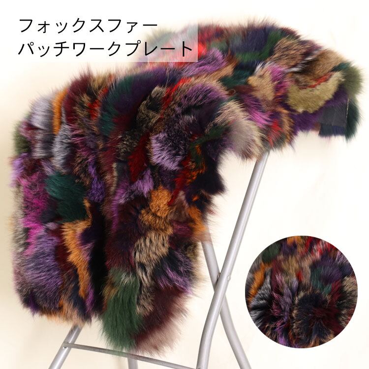 FOPLT1AMX1037【送料無料】 フォックス ファー大判 プレート マット シート ラグマット インテリア マルチカラー モザイク 毛皮 レディース プレゼント ハンドメイド