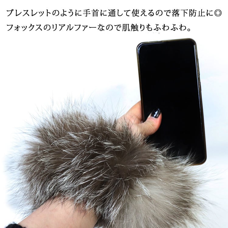 フォックス ファー スマートフォン ストラップ リアルファー スマホストラップ スマホ 全機種対応 ストラップホルダー ファー アップサイクル 秋冬 冬 ショート アクセサリー チャーム レディース ギフト プレゼント FOSMA1