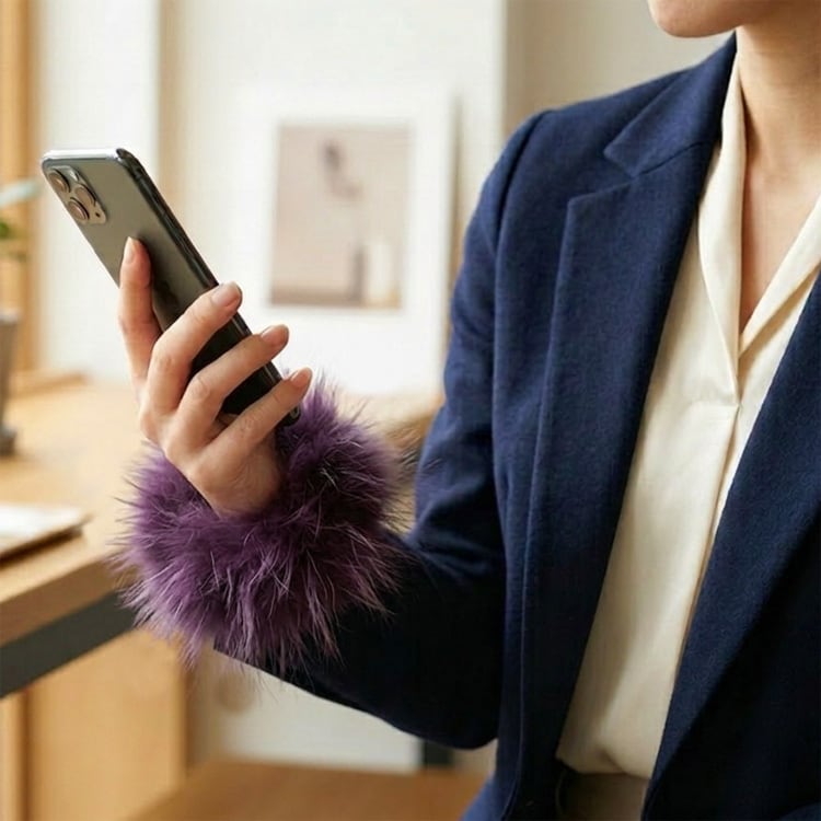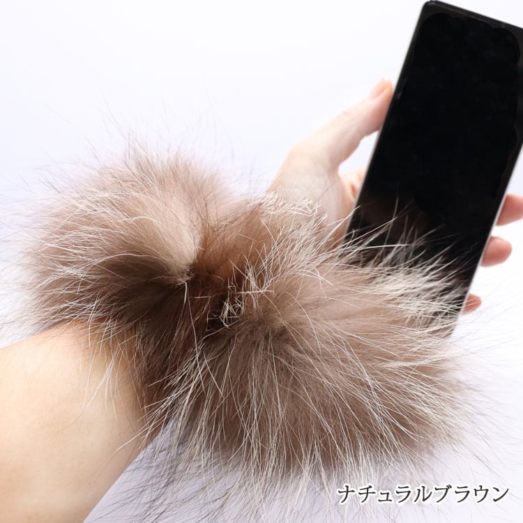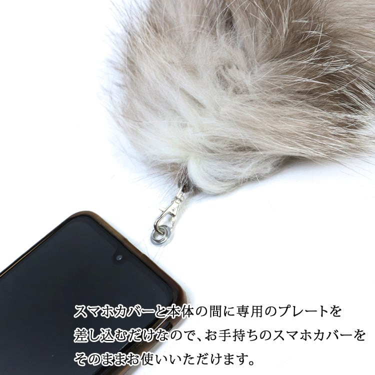 お手持ちのスマホケースに挟むだけ!フォックスの毛皮のストラップ。贅沢なボリュームのフォックスをいつでも持ち歩けるスマホストラップにしてみました。リアルファーならではのふわふわ肌触り。スマホのケースに挟むだけなので、サイズや機種にも関係なくお使いいただけます。手首に通すとブレスレットのようにも見え、スマホを落とす心配もなく安心です。