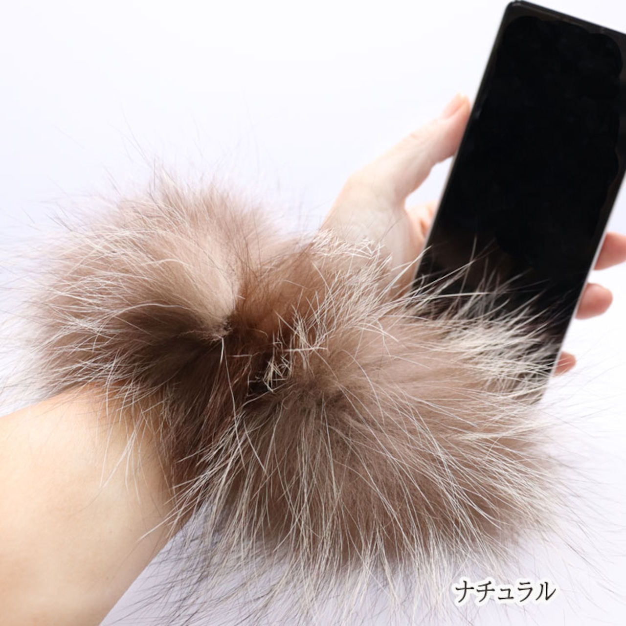 お手持ちのスマホケースに挟むだけ!フォックスの毛皮のストラップ。