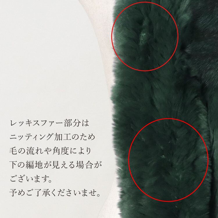 ※こちらの商品はレッキスファー部分がニッティング(編み込み)加工となっている為、毛並みや角度により編地が見える場合がございます。予めご了承くださいませ。