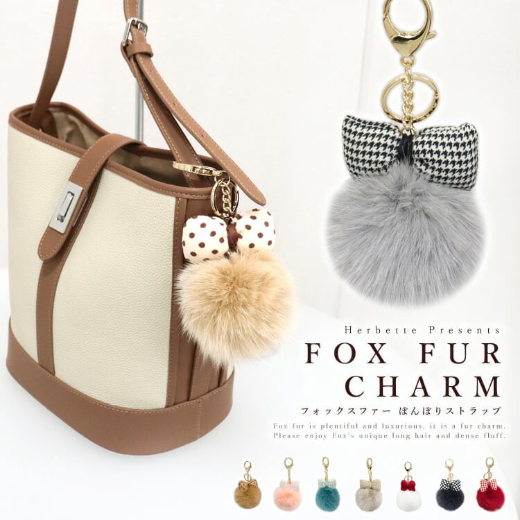 ファー専門店の人気のフォックスファーバッグチャームに可愛いリボン付き登場です。ボリュームたっぷりのフォックスファーがラグジュアリーなファーチャームです。まるく可愛くかわいいリアルファーにそれぞれ大きなリボンが付きました。フォックスならではの長い毛足と密度の濃い綿毛、専門店ならではのカラーバリエーションをお楽しみください。