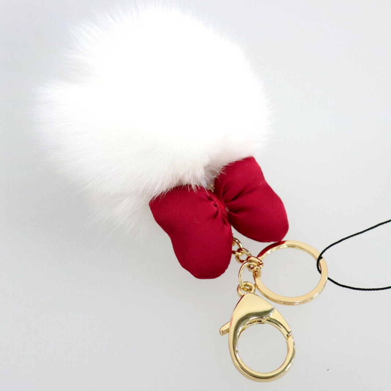 リボン付 フォックス ファーチャーム バッグチャーム キーホルダー アクセサリー ストラップ ぼんぼり レディース リアルファー チャーム ギフト プレゼント FOXNS1