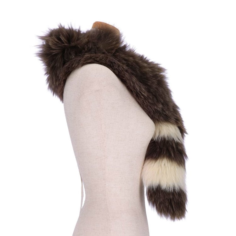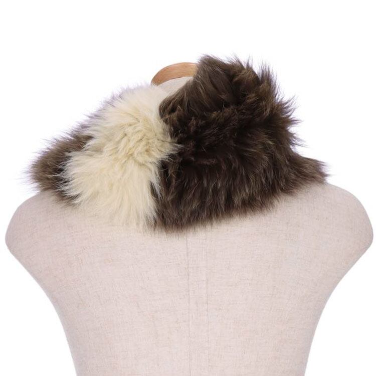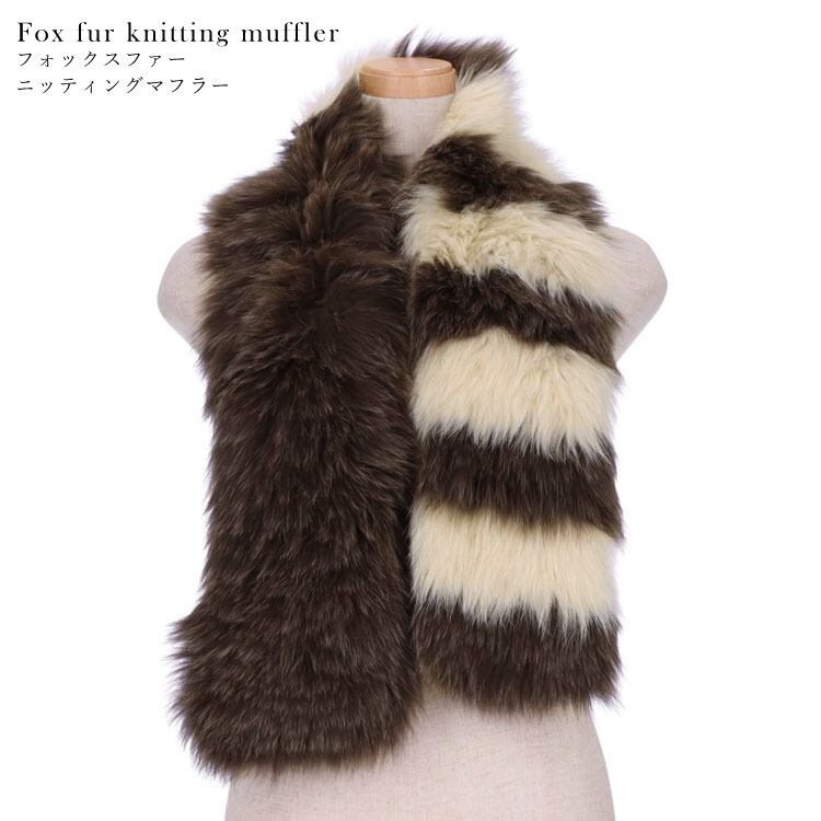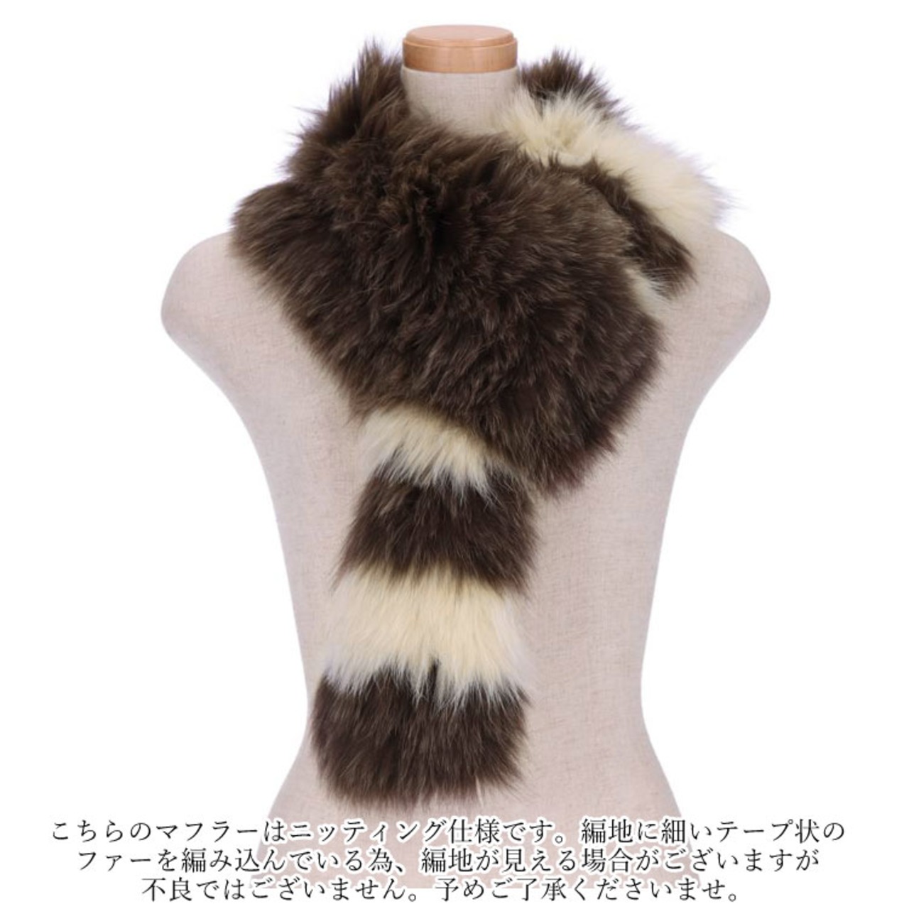 FOZ511ABR1037 フォックス ファー マフラー バイカラー マルチカラー アシンメトリー 編み込み ニッティング 配色 ロング ふわふわ ブラウン ベージュ レディース ギフト プレゼント ボーダー 送料無料