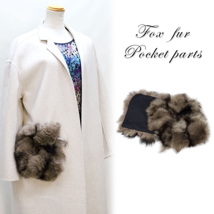 フォックス ファー 手芸 ポケット 飾り パーツ 左右ペア アクセサリー 日本製 レディース ギフト プレゼント ポケット ポケットファー コート アレンジ フェイク フェイクポケット FP5371