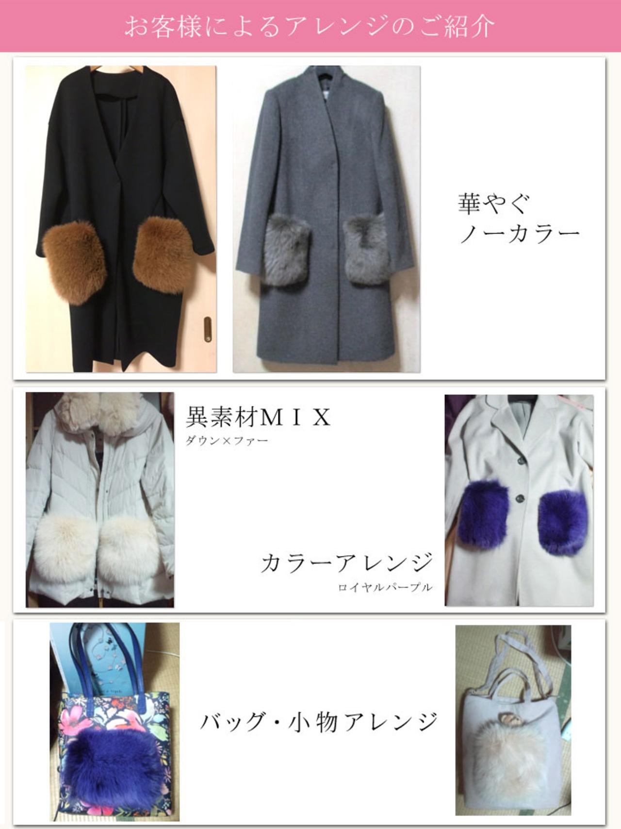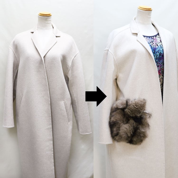 あなたのお気に入りのコートや、飽きてしまったコートなどに付けてみてはいかがでしょうか。