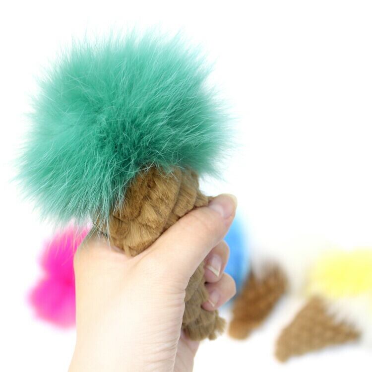 【サイズ】本体:横幅約14cm × 縦幅約17cm(※個体差有)、リング内径2.5cm、ストラップ長さ約7cm(※リング部含む) 【重さ】約30g 【素材】本体:フォックス・ラビット ヘタ部分:レザー 【留め具】リング 【原産国】中国