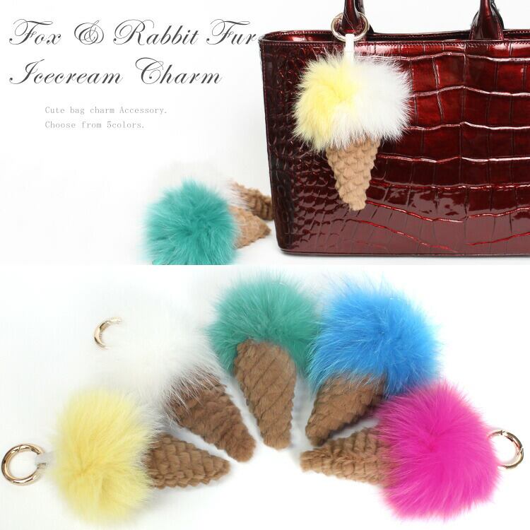 フォックス ラビット ファー チャーム ソフトクリーム アイスクリーム バッグチャーム ストラップ 毛皮 アイス ファーチャーム キーホルダー アクセサリー FOX レディース ギフト プレゼント