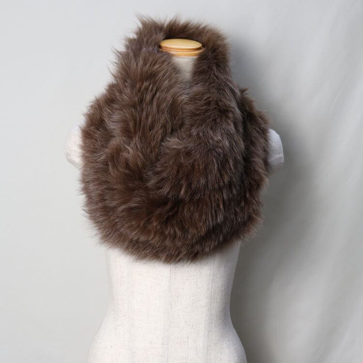 フォックス 編み込み ファー スヌード ブラウン 送料無料 レディース ギフト プレゼント FX3011