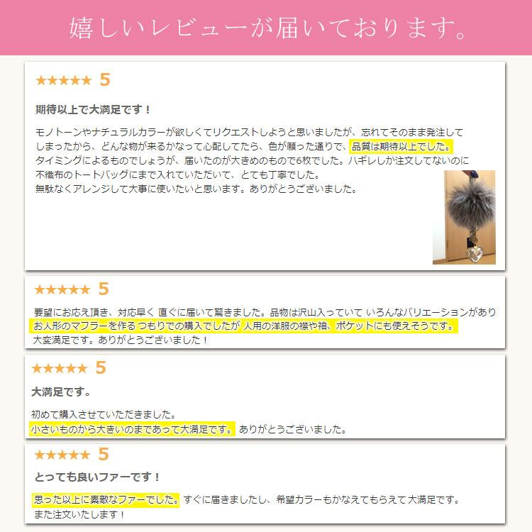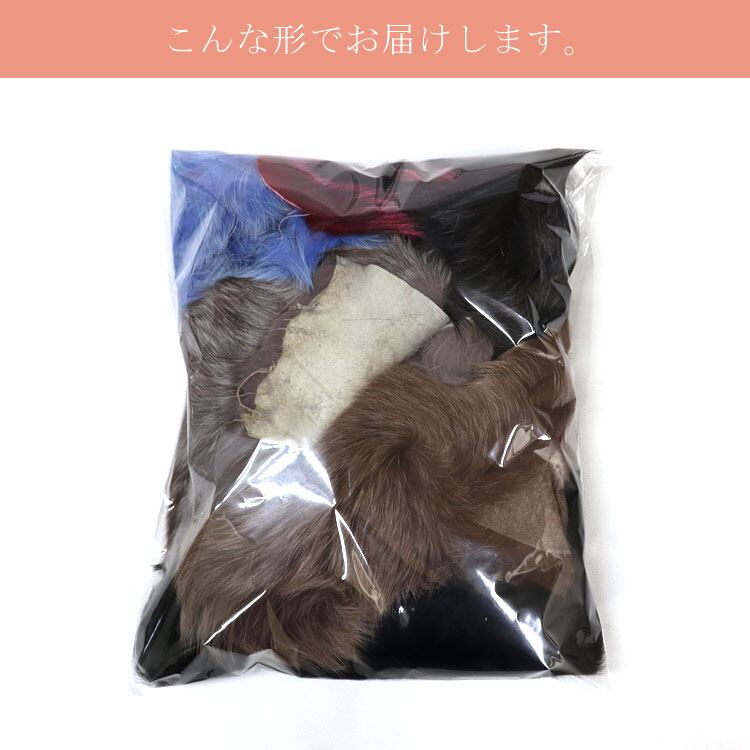 ■フォックスファーの「はぎれ」です。マフラーやコートなどの製造過程で出てしまう端切れ(はぎれ)を集めました。手芸の素材として、リメイクや作品作りにどうぞ。アクセサリー向きの小さいサイズが中心です。色、サイズともにアソートなので、一度に色んな種類をお楽しみ頂けます。