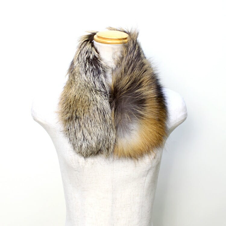 母の日 / 上質なゴールドクロスフォックスをナチュラルカラーでそのまま贅沢に使用したマフラーです。上品なブルーフォックス、華やかなシルバーフォックスとはまた違う魅力のある毛質。赤味のある色合いながら、ダークブラウンの層が見えることで、落ち着き、まとまった印象に。少しマニッシュでクールな雰囲気。選別した原皮を、弊社契約の日本の工房にて丁寧に仕上げてもらいました。