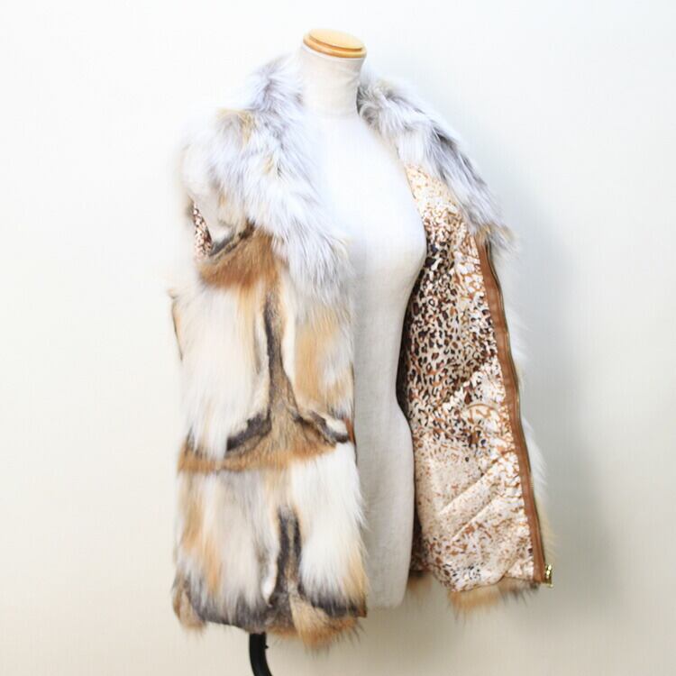 母の日 / 【サイズ】肩幅約35cm 身幅約90cm 着丈約66cm アームホール約46cm 【重さ】約485g 【素材】ゴールドアイランドフォックス 【留め具】ファスナー 【内側ポケット】無し 【外側ポケット】2か所 【裏地】有り