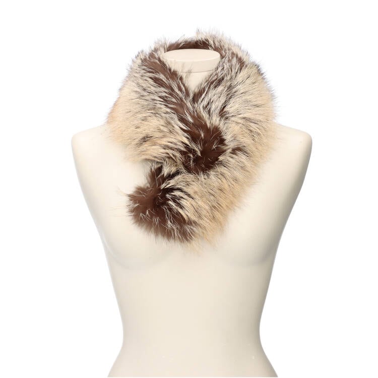 上質なサガゴールドクロスフォックスをナチュラルカラーでそのまま贅沢に使用したマフラーです。すべてスカンジナビア産、原皮のオークションで買い付けた一流の原皮を使用しています。上品なブルーフォックス、華やかなシルバーフォックスとはまた違う魅力のある毛質。赤味のある色合いながら、ダークブラウンの層が見えることで、落ち着き、まとまった印象に。少しマニッシュでクールな雰囲気。日本の職人さんに丁寧にマフラーに仕上げてもらいました。