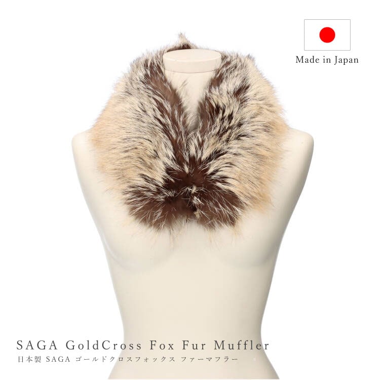 日本製 SAGA サガ ゴールドクロスフォックス ファー マフラー 白茶系カラー スカンジナビア産 レディース ギフト プレゼント