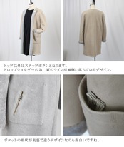 【サイズ(約~cm)※毛先含む】肩幅44(ドロップショルダー) 着丈86 バスト98 袖丈58 留め具:トップボタン×1・スナップボタン×3 ポケット:2つ(表裏共用) 重さ約1,070g【素材】ラム