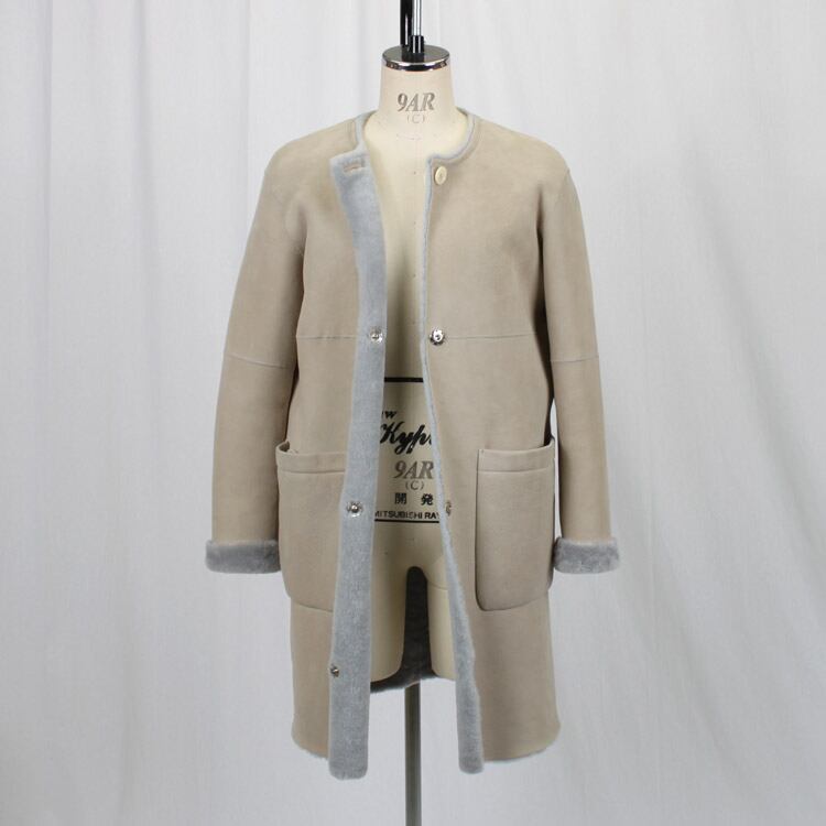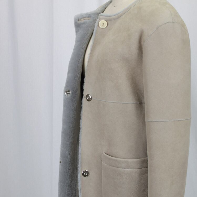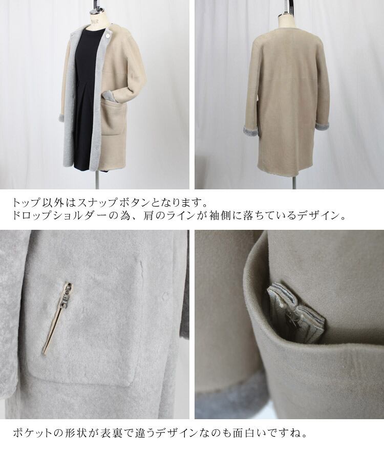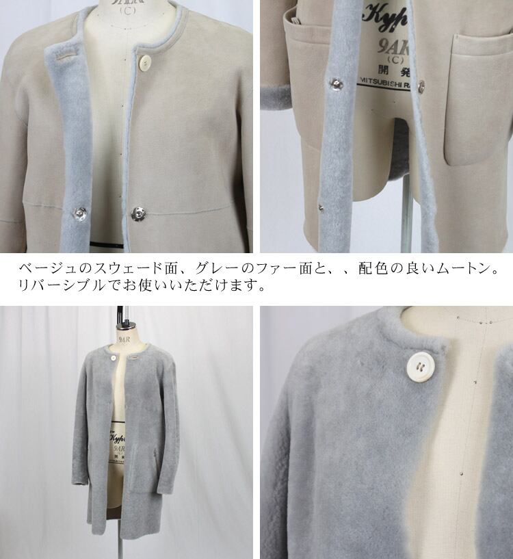 HL905EALG1014 ラム ムートン リバーシブル ファー コート ノーカラー ベージュ×ライトグレー 羊革 送料無料 レディース ギフト プレゼント
