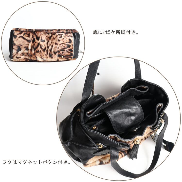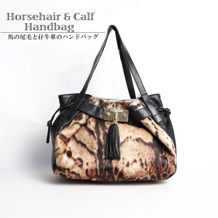 カーフ レザー ・ ホース ファー ハンドバッグ アニマル柄 バッグ 送料無料 レディース ギフト プレゼント