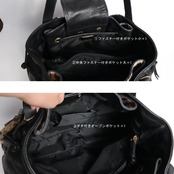 【サイズ(最大部を計測)】縦幅約27cm 横幅約40cm マチ幅約15cm ハンドル持ち上がり約21cm 【重さ】約760g 【内側収納】オープンポケット×1、ファスナー付きポケット大×1、ファスナー付きポケット小×1 【外側収納】無し 【留め具】マグネットボタン×1 【裏地】有り 【素材】ホースヘアー、カーフ