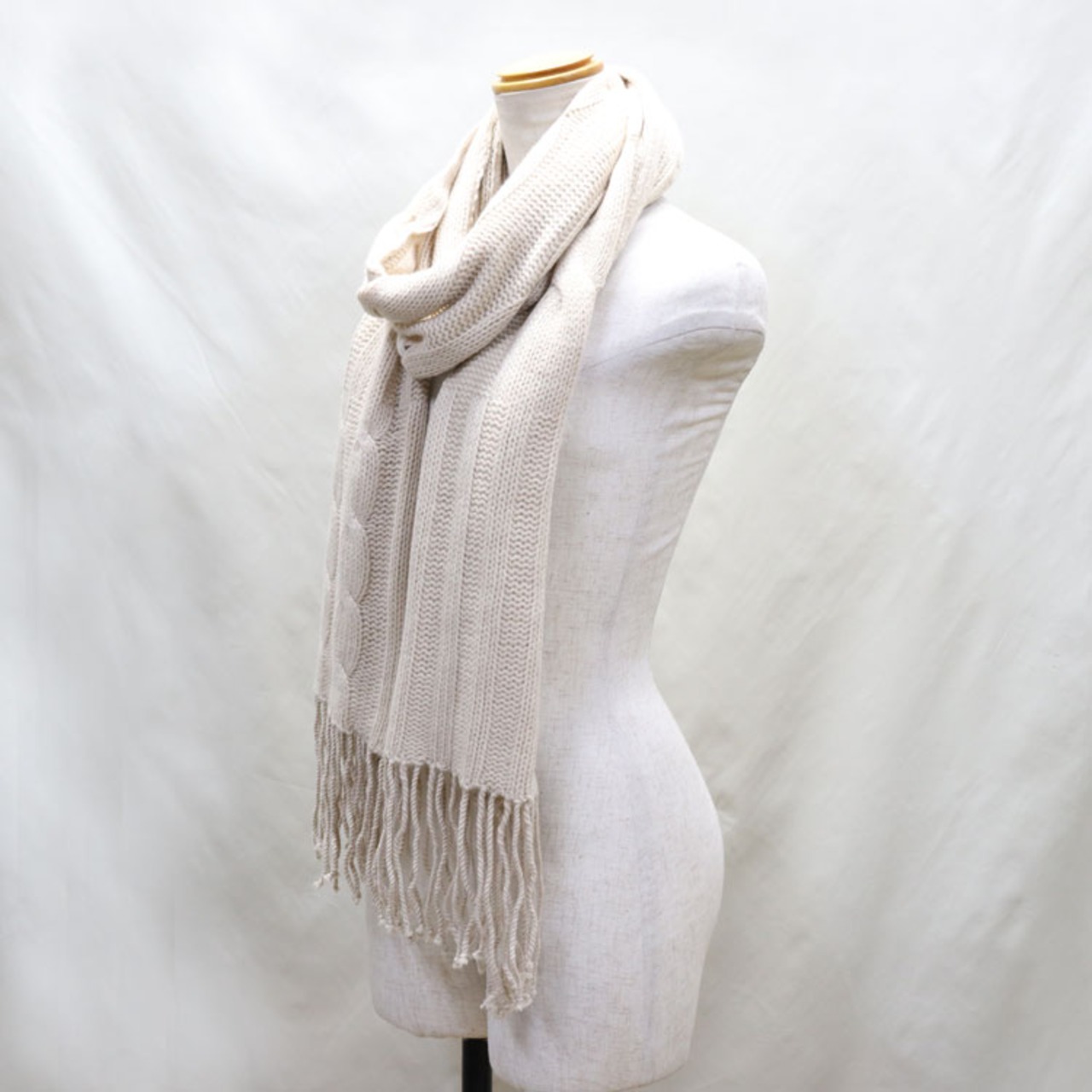 カシミヤ混 ストール マフラー ベージュ フリンジ付き メンズ レディース